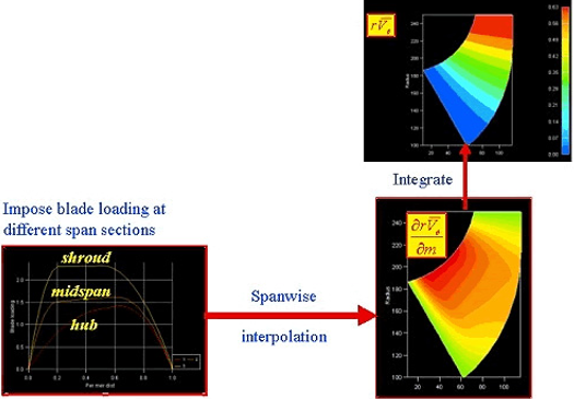 - Impose ∂rVθ/∂m distribution on streamwise sections inside the blade